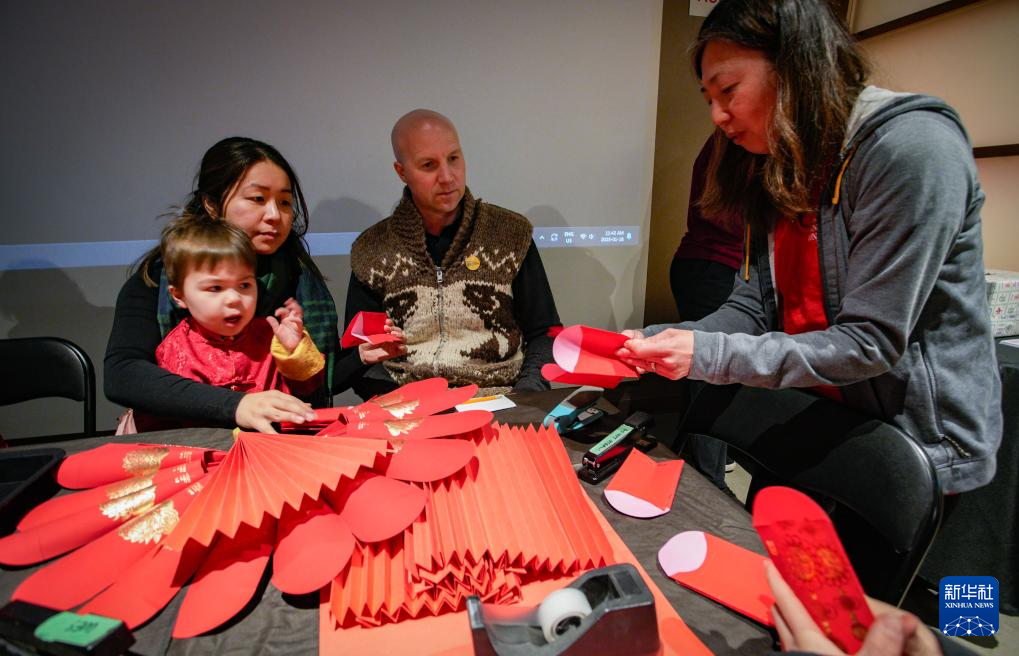 1月18日,人們在加拿大溫哥華舉行的中國春節(jié)文化體驗(yàn)活動上學(xué)習(xí)制作春節(jié)裝飾品。
