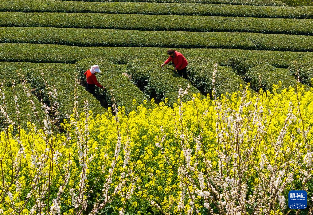 3月18日,茶農在湖北省咸寧市通城縣四莊鄉(xiāng)寺背村臥龍溝生態(tài)有機茶業(yè)專業(yè)合作社采摘茶葉。