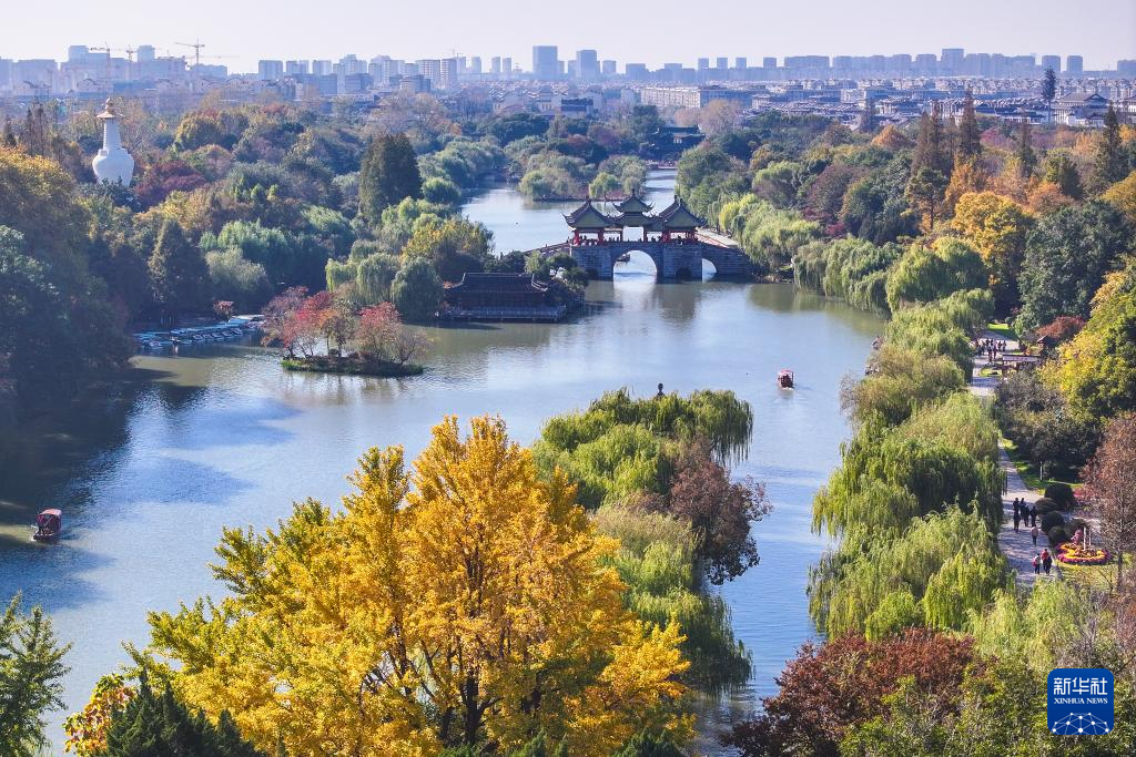 11月19日拍攝的江蘇揚(yáng)州瘦西湖風(fēng)景區(qū)(無人機(jī)照片)。