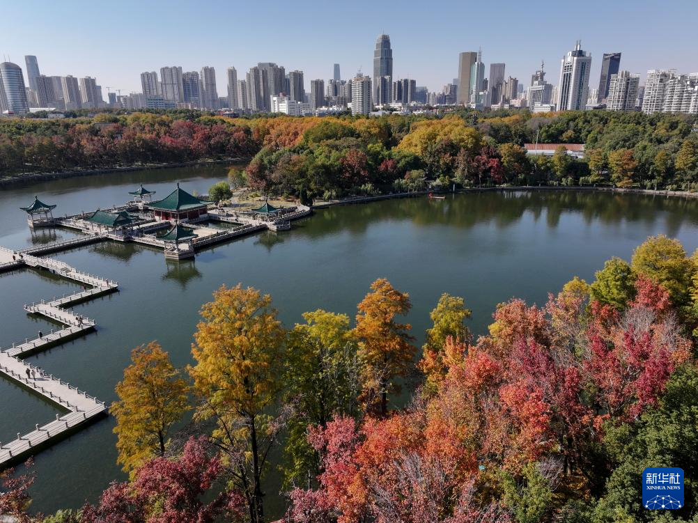 11月18日在湖北省武漢市東湖風(fēng)景區(qū)拍攝的初冬景色(無人機(jī)照片)。