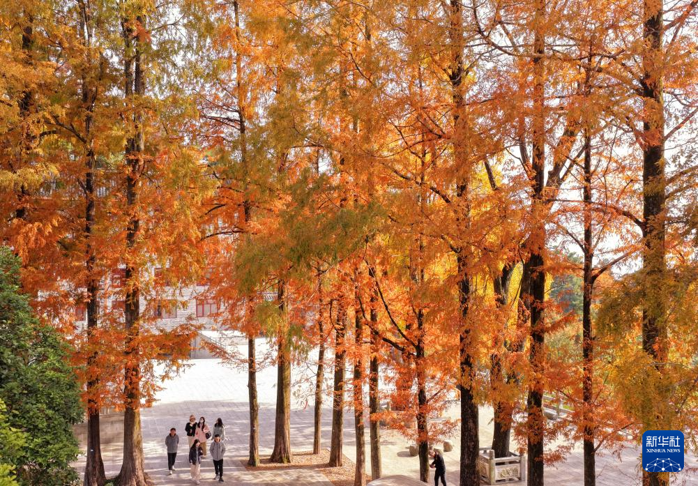 11月19日,游客在湖南省衡陽市南岳衡山風(fēng)景區(qū)賞景游玩(無人機(jī)照片)。