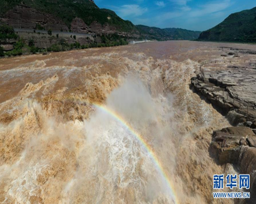 浙江新安江水庫泄洪現彩虹 持續(xù)