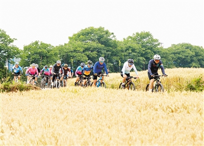 五月的沙河國家濕地公園碧水環(huán)繞、綠樹成蔭,處處鳥語花香,充滿了自然之美。一輛輛自行車在田間小路和林蔭小道中排成一條快速行進的直線,選手們嗅著麥香,你追我趕、肆意馳騁。